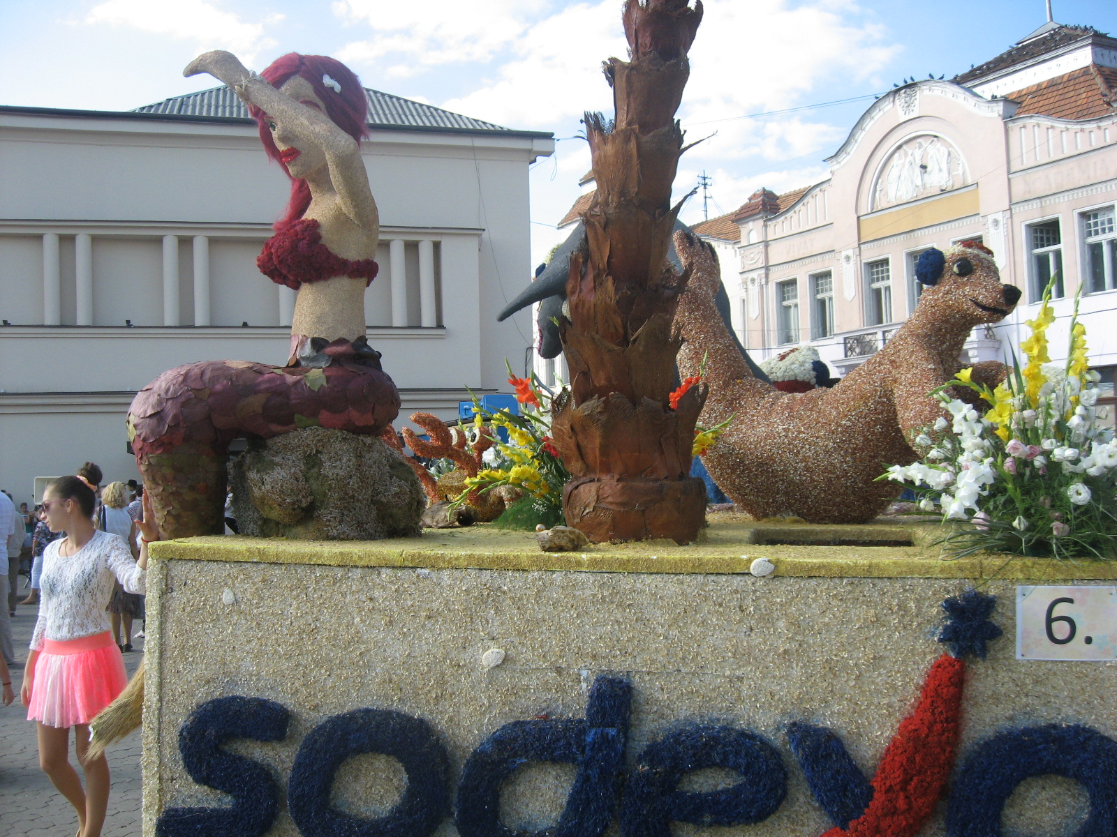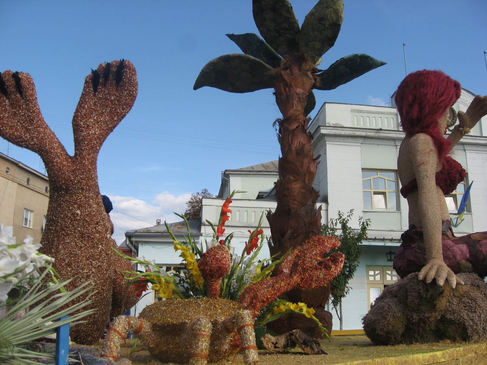 «У загальному квіткова композиція призначена для дітей, тому тут можна побачити героїв відомої казки «Русалонька», - каже Василь Марюхнич». Для композиції були використані як сухі, так і свіжі квіти. У букетах свіжих квітів красувалися гладіолуси, троянди, калли тощо.