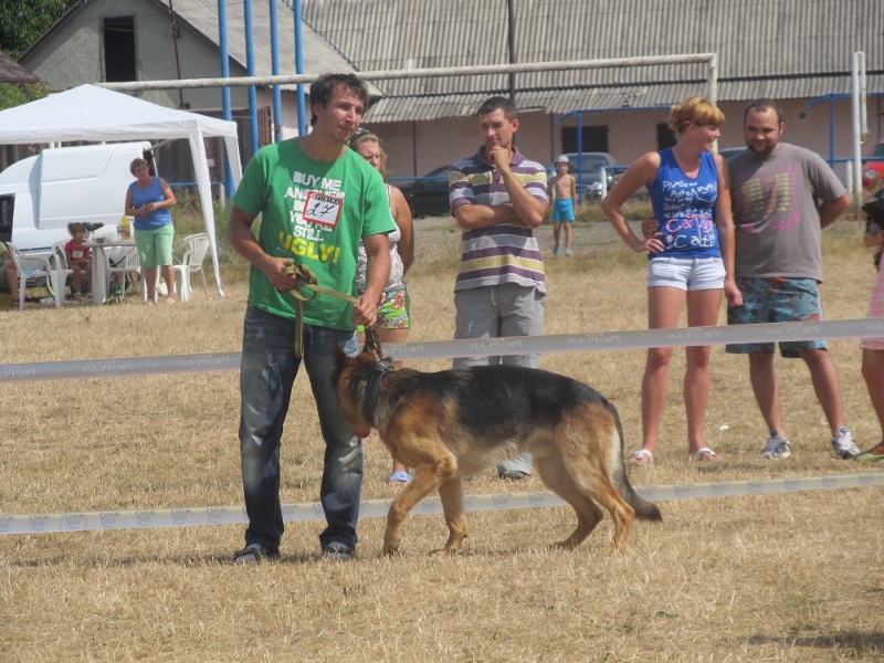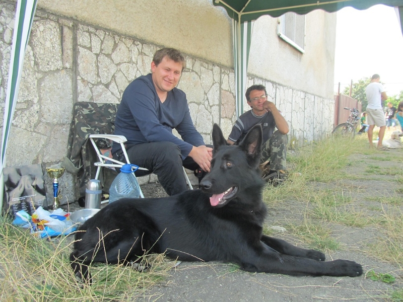 До нашої сім’ї цей пес перейшов завдяки дуже цікавим обставинам. Спочатку, його придбала одна досить заможна сім’я для маленької донечки. Але цуценя дуже швидко виросло, бо це крупна порода. Може, не хотіло гратися, не хотіло бігати і, зрештою, його віддали садівнику. А садівник людина проста – тримав його як звичайного пса – у буді, годував тим, що було під рукою. Потім здав у притулок, звідки ми забрали пса худющого, у якихось струпах. Він у нас лише 8 місяців, але вже зараз бере призові місця на виставках».